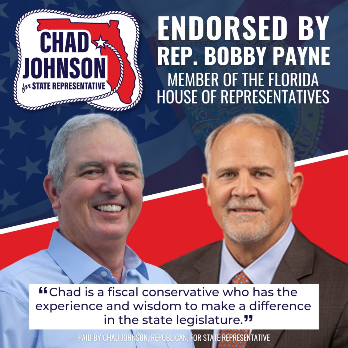 Chad Johnson will support our law enforcement, military and veterans. Those who serve and protect should be appreciated and respected.